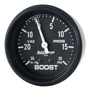 Auto Meter Auto Gage 2-5/8 inch Mechanical Vacuum/Boost (66.7 millimeter) 30 inch Hg/20 pounds per square inch feature bronze bourdon tube 270 degree sweep movements and durable nylon gearing that have made these rugged and long lasting gauges a proven high performance favorite for over 25 years. These mechanical gauges require no electrical power for operation making them an ideal choice for vehicles with no or low powered electrical systems. Includes 6 feet tubing and 1/4 inch NPT adapter/fitting.