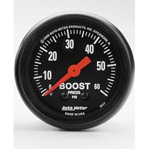 Auto Meter Z-Series 2'' Boost Gauges are stylish, subtle with an all black design for a factory look. These gauges are ideal for any application. The Auto Meter Z-series fuel pressure gauge reads from 0-30'' Hg / 0-30 PSI. The diameter of the mechanical gauge is 2-1/16''. The Z-series gauges carry-on the high performance look in an understated way. It is a clean, simple line with a bold, easy-to-read face that looks right at home in everything from dailey drivers to big-dollar street rods and race cars. The gauges have fluorescent red pointers and are available in a complete line of mechanical and electrical styles. It can be mounted in optional panels, gauge pods or mounting cups. It includes 12-volt lighting, red and green colored light bulb covers and all necessary mounting hardware. It includes 1/8" and 1/4" NPT Fittings along with 6 feet nylon tubings.
