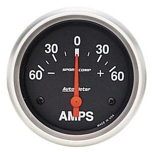 Auto Meter Sport-Compact Short Sweep Electrical Ammeter Gauge is used to measure the flow of electric current in a circuit. It uses magnetic deflection, where current passing through a coil causes the coil to move in a magnetic field. The voltage drop across the coil is kept to a minimum to minimize resistance in any circuit into which the meter is inserted. Advanced 90 degree air core movements and simple three wire installation characterize these high performance instruments. Electric sending units keep hazardous fluids in the engine compartment sending collected data via an electrical signal to quick reacting, precise air core movements to give you all the information that you need and nothing that you don't. These Sport-Compact gauges are the trademarks of the entire Auto Meter line with their rugged race styling and unmatched performance. It is a hardcore instrument panel that will stand up to any brutal racing environment. It became the absolute standard in all forms of racing due to its bold appearance, state-of-the-art technology and unrelenting construction. Years of experience designing versatile gauges have made the Sport-Compact series the ultimate choice of racers worldwide. Sport-Compact gauges include mounting hardware and light. These rugged instruments are chosen by the pros because they stand the test of time.